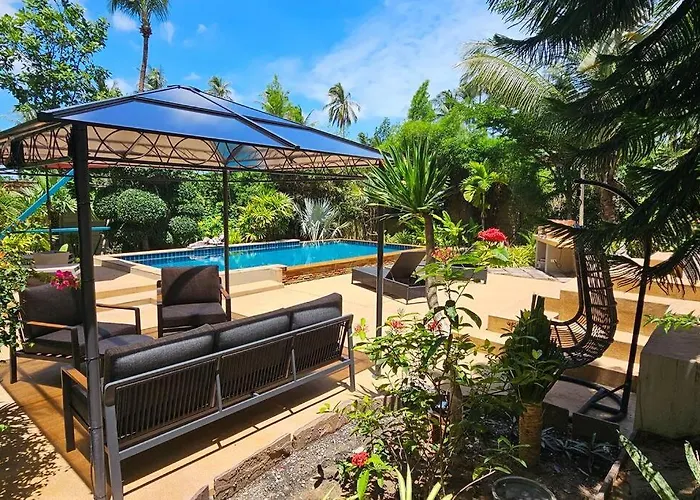 Located approximately 20 minutes' walk from the Slip N Fly Party, the 2-bedroom Villa Voktum, 3Br, Big Space, Nature, Relax Ko Pha Ngan provides access to a private swimming pool. Featuring a terrace, the property is situated 3.3 km from Tesco Lotus Koh Phangan.
